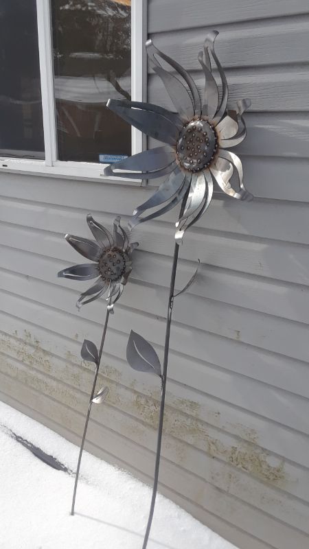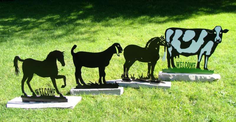 Garden ovals are made from 11 gauge steel which is about the thickness of a quarter, very heavy and sturdy with 3/8" thick rods . We have several standard designs or you can have one personalized for yourself, you could add your name, house # or even change the whole picture as we have 1000's of different clip art to create your own call for a quote today. The ovals measure approximately 15" x 22" and are primed and powder coated for a long lasting finish, some are just finished semi gloss black and others have several colours applied. These make great gifts for any occasion.